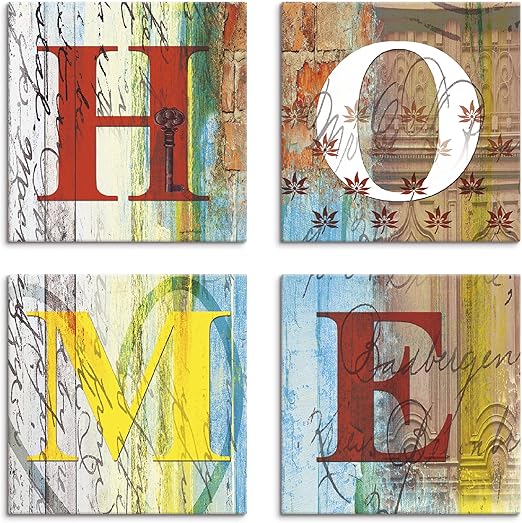 Artland Leinwandbilder Auf Holz Wandbild Bild Set 4 Teilig Je 20x20 Cm Quadratisch Bilder Mit Spruchen Spruch Kunst Bunt Buntes Zuhause J5bq Amazon De Kuche Haushalt