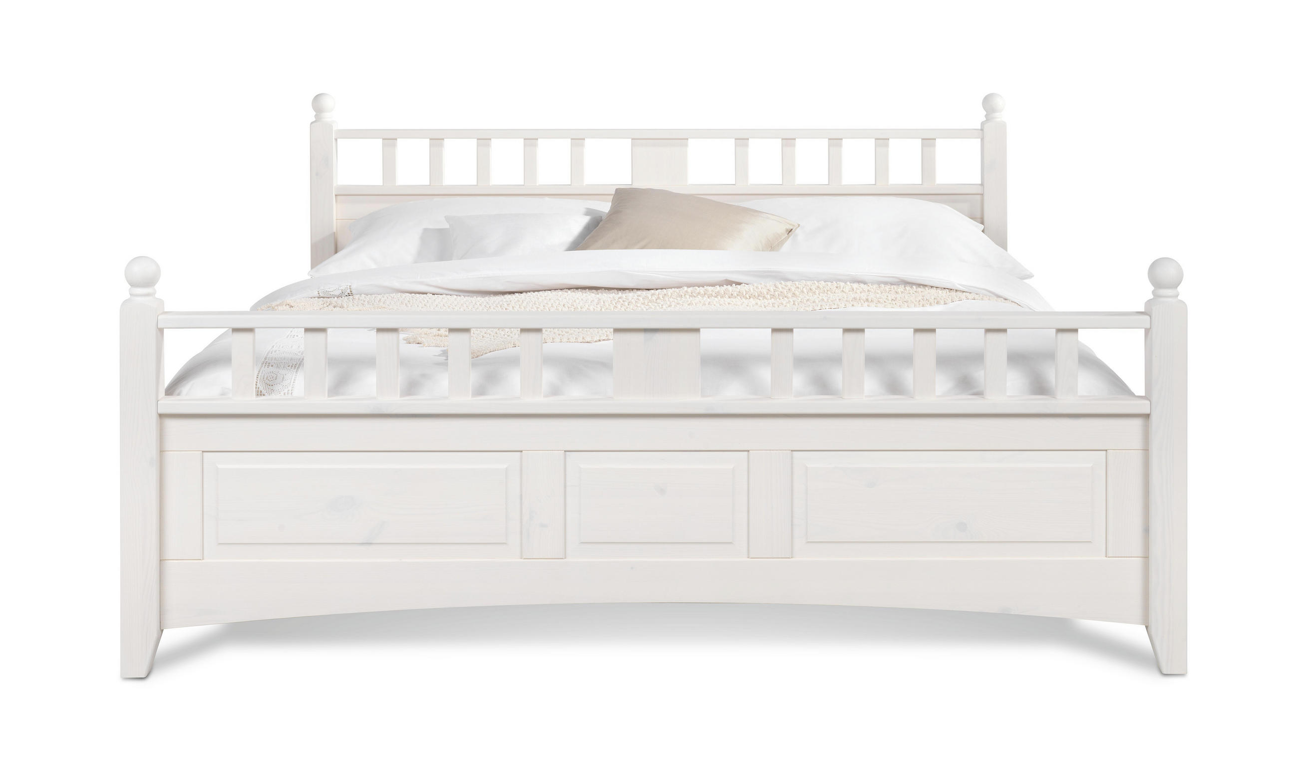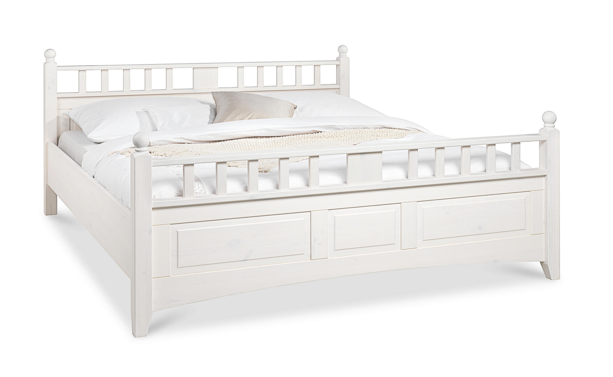 Bett 200x200 Kiefer Massiv Weiss Lasiert