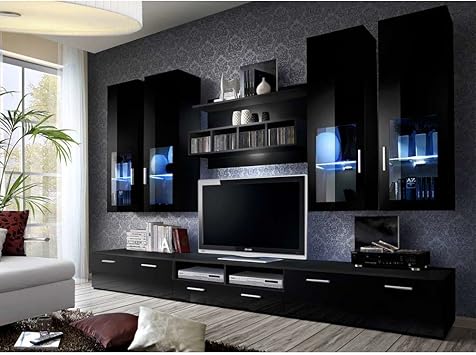 Wohnwand Blackdream Hochglanz Schwarz Wohnwand Mit