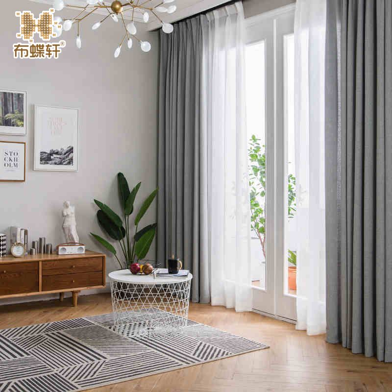 Moderner Vorhang Uni Aus Polyester Und Leinen Fur Schlafzimmer Grau
